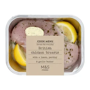 | 27 Apr 2024 09:03 | First seen: M&S 2 Lemon & Garlic Chicken Breasts - Cook Menu (382g) at £6.00. Out of stock. |